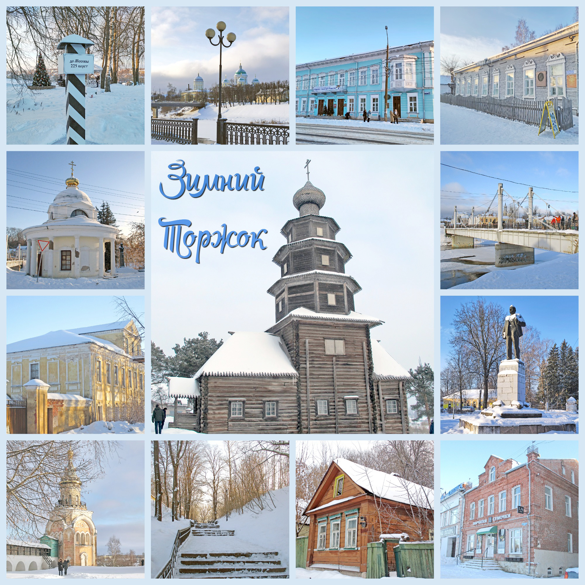 18.02.2023. На новогодних каникулах мы ездили в «Пушкинскую экспедицию» по Тверской области. Прогулялись по Твери, Старице и Торжку, осмотрели музеи Пушкина в Берново и Торжке, поклонились праху Анны Керн в Прутне и полюбовались на деревянные и каменные красоты в Василёво. Колокольным итогом путешествия стал колокольчик «Торжок» с изображением заснеженного Старо-Вознесенского храма в Торжке («Храмы, соборы»). Он, кстати, составил прекрасную пару с летним храмом.