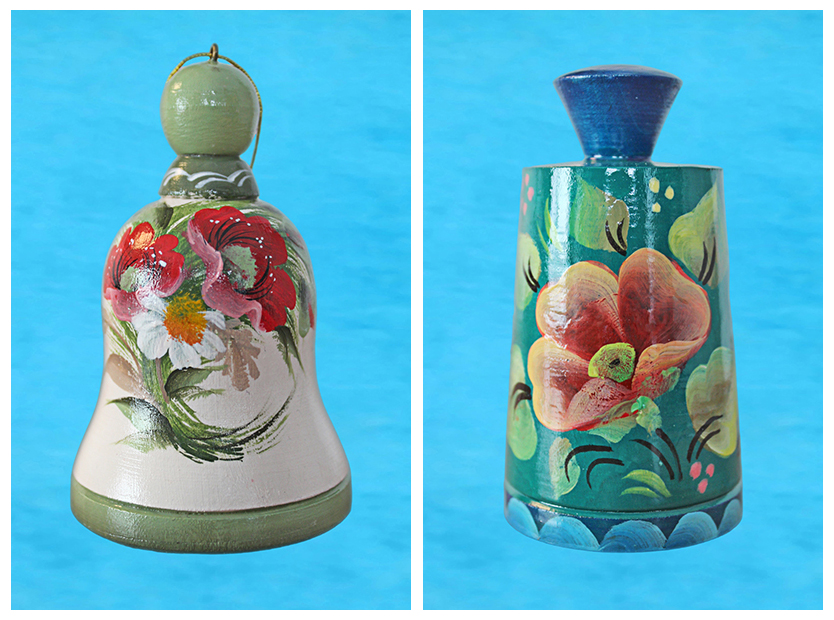 и яркий колокольчик с авторской росписью в северных традициях («Колокольчики из дерева»).