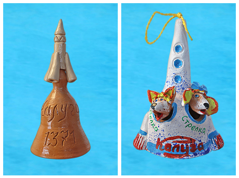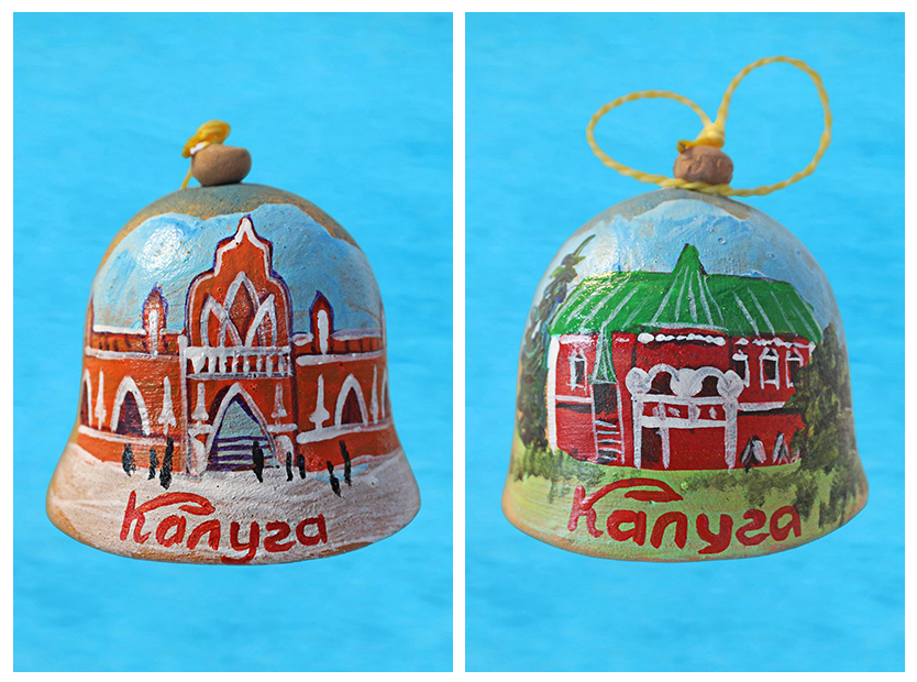 09.05.2023. В начале апреля мы ездили в Калугу. Посетили две выставки с участием знакомых калужских керамистов - в Доме мастеров и в Музее изобразительных искусств. Погуляли по весеннему городу и, конечно, приобрели новые колокольчики. Поскольку поездка была накануне Дня космонавтики, два из них оказались соответствующей тематики, и заняли место в «Географических объектах» и «Предметах». На двух других изображены калужские здания - «Здания, сооружения».