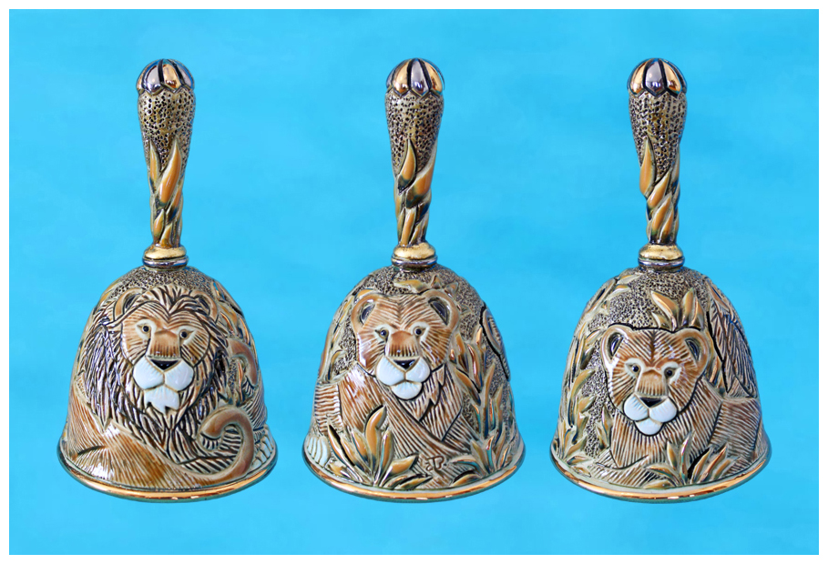 12.09.2023. Лев и две его львицы изображены на керамическом колокольчике, произведенном в Уругвае. Семейство можно посмотреть в «Фауне». Сердечная благодарность Ольге за подарок!!!