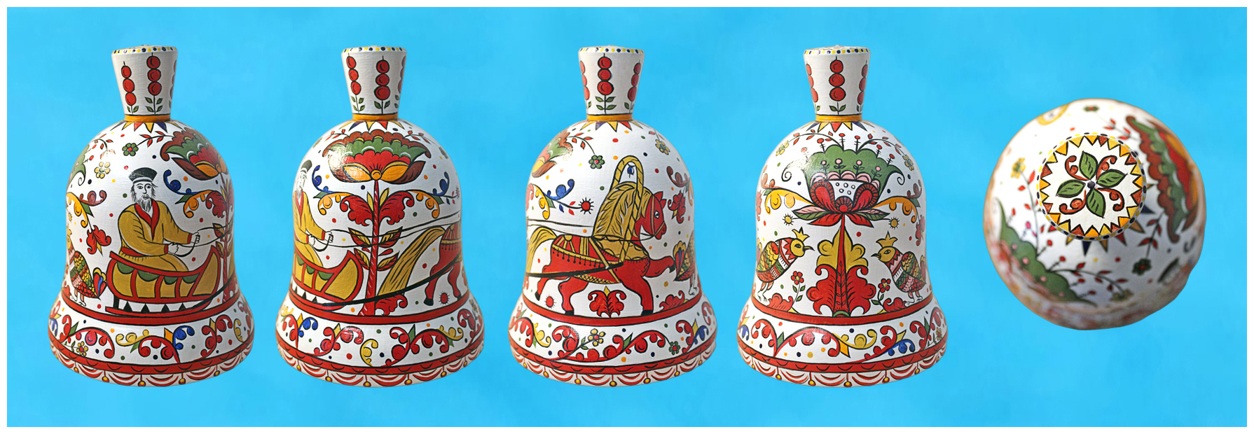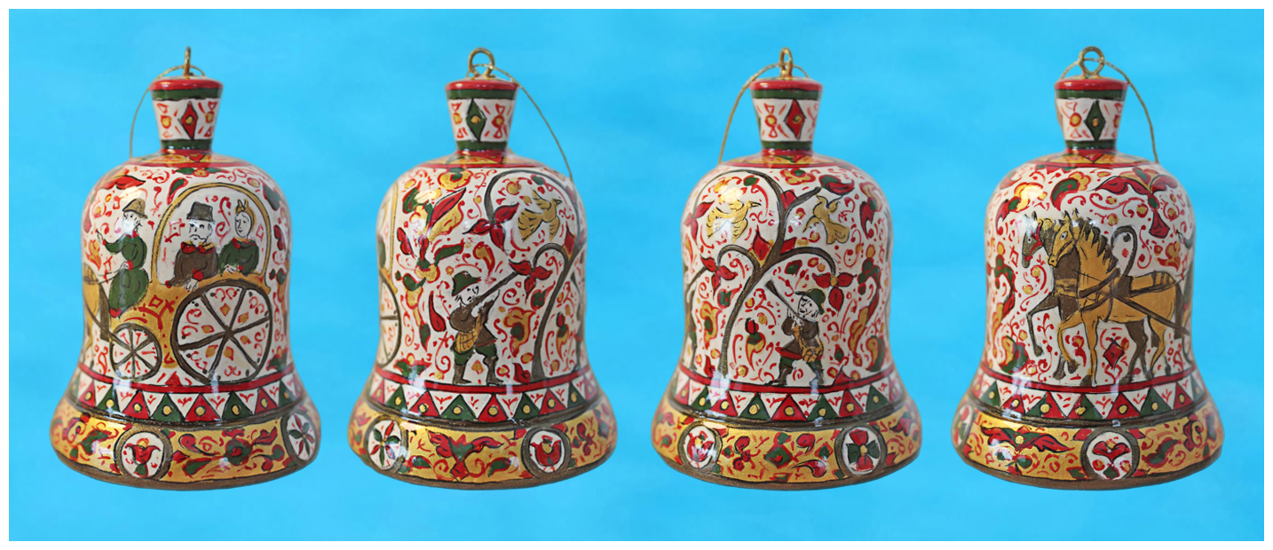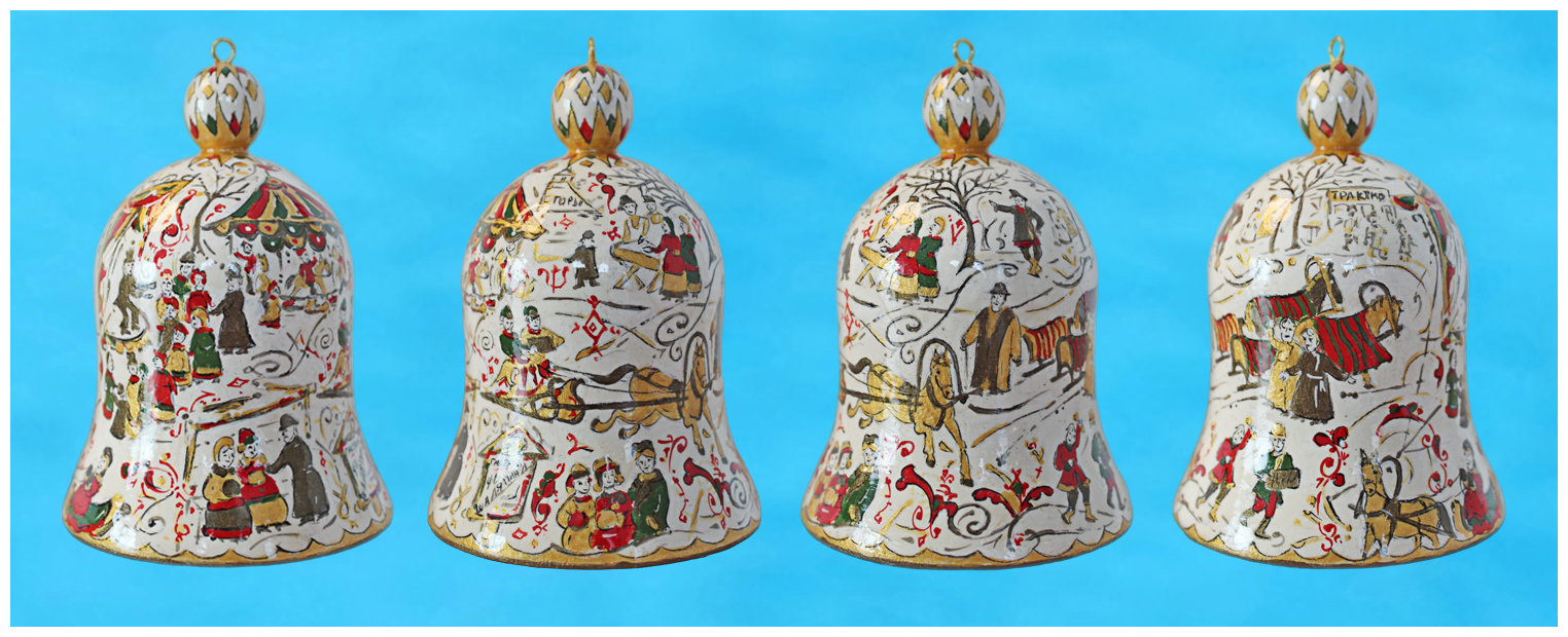 21.05.2023. Четыре стороны авторского колокольчика, выполненного по ярмарочным мотивам на картине Б.М.Кустодиева «Портрет Ф.И.Шаляпина» или «Ф.И.Шаляпин на ярмарке», можно увидеть в «Колокольчиках из дерева».